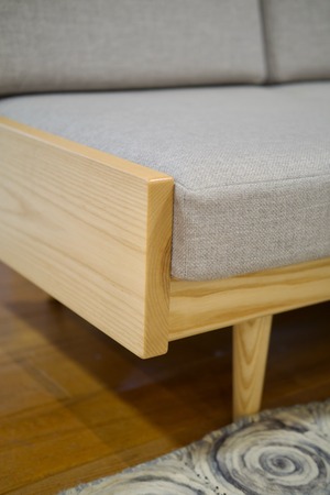 ホワイトアッシュ材を使用したデザインで、シンプルながら温かみの感じられるソファに仕上がっています。