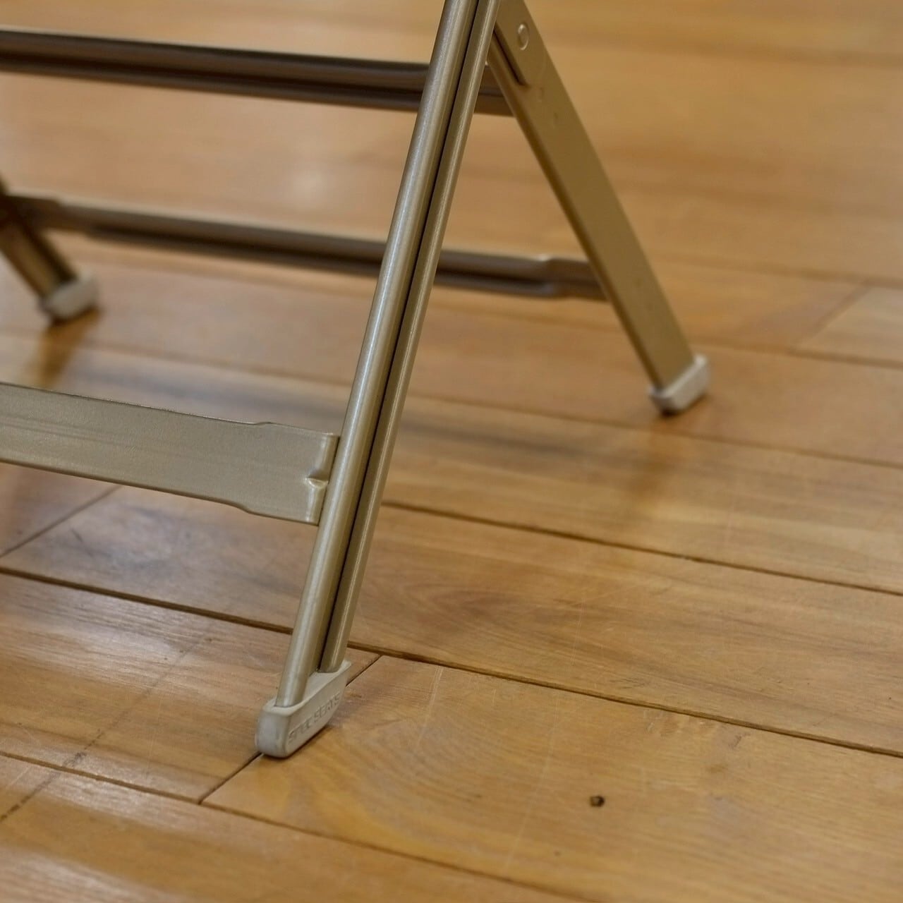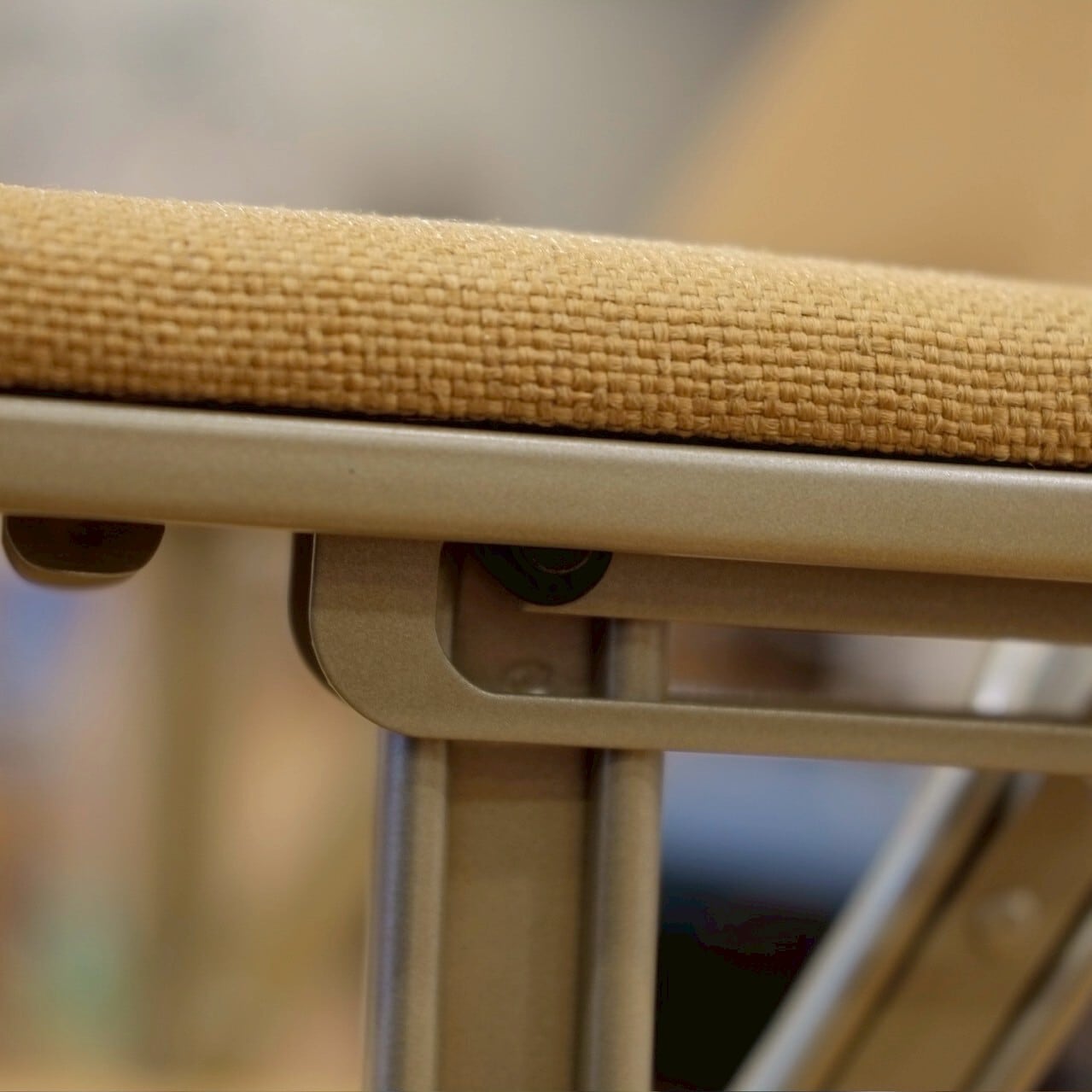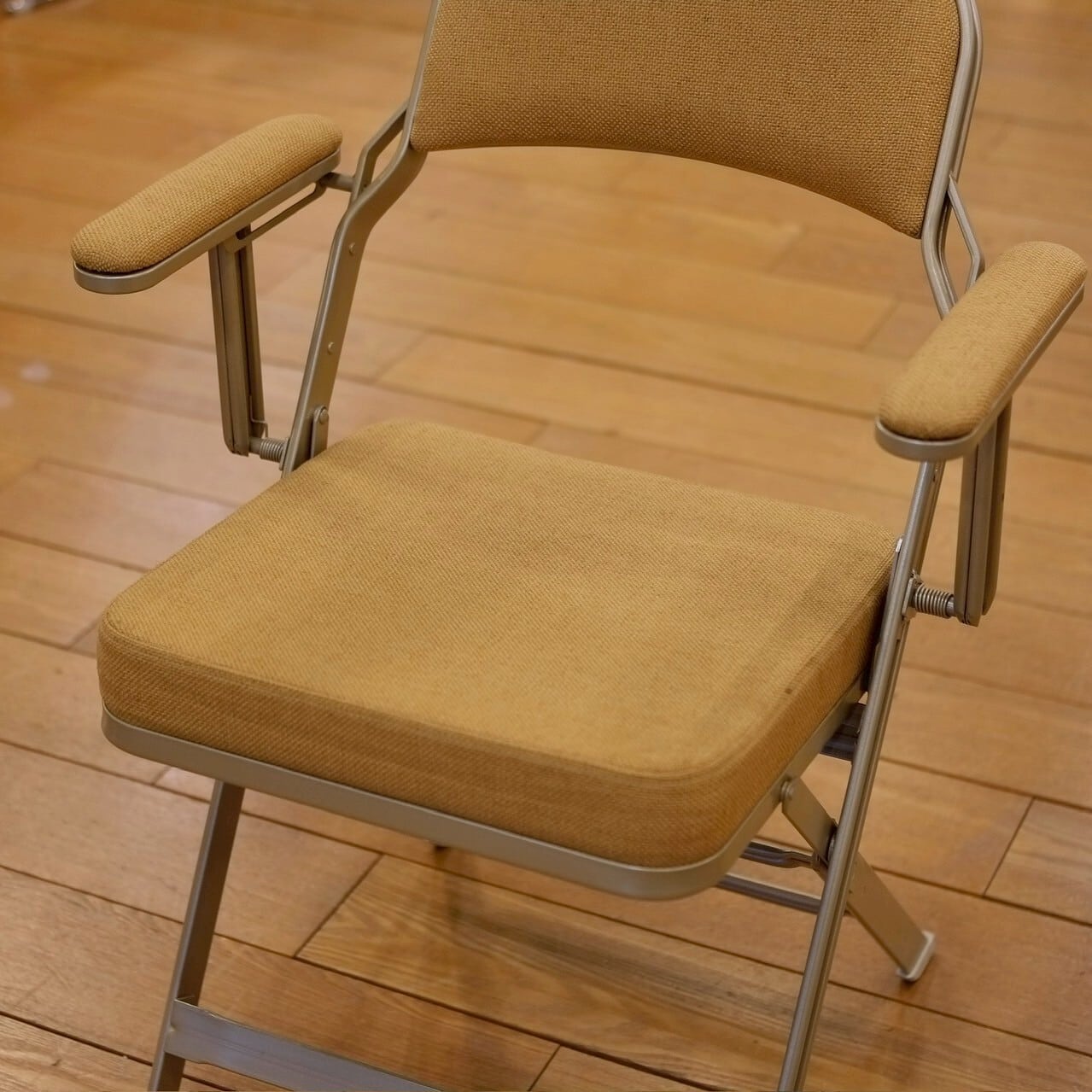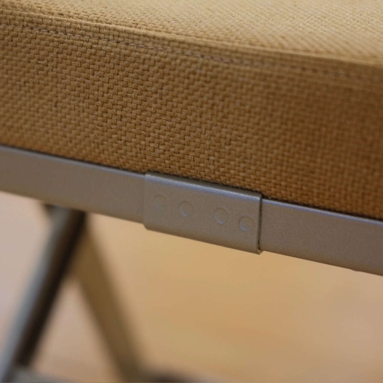 フォールディングチェアは簡易なものが多い中、しっかりとしたクッションがついているので長時間座っても疲れにくく、平らではない場所でも安定性を確保する機能を持った名作チェアです。